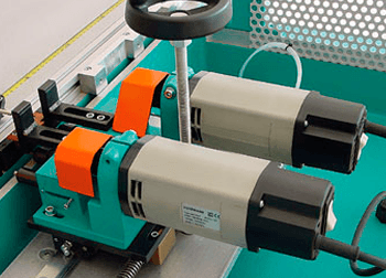 El ciclo automático se inicia con el pedal neumático. La pieza ya posicionada es sujetada, fresada hasta la profundidad ajustada, el equipo de fresado retorna a su posición inicial y la pieza es liberada. Ajustes de topes, como igualmente la profundidad de fresado de forma manual. La separación de las fresas entre sí, mediante manivela con lectura digital.